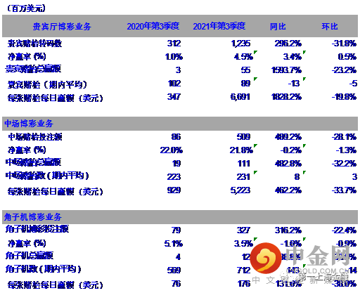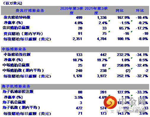 图表2: 2021年第3季度永利皇宫业绩表现