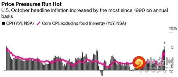 周二的时候我们通过以PPI为首数据的参考中就判断,美联储坚称通胀是暂时性的将是一个小概率事件。通胀问题可能比预计的情况更加的糟糕,来到周三北京时间晚上21:30,美国将公布10月消费者物价指数(CPI)数据,今年10月份美国人的生活成本再次大幅上涨。10月消费者价格指数环比上涨0.9%,同比涨幅更是达到6.2%,为31年以来的最大同比涨幅。