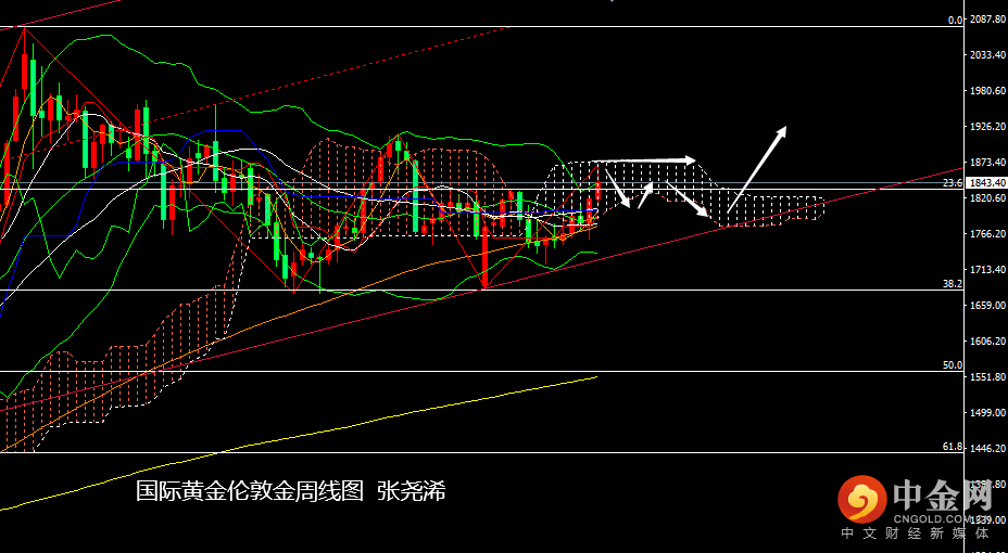 技术上:周线级别:金价本周延续上周触底反弹之力再度大幅走强,虽在触及昨日给出的5个月高点后产生回落,不过也是在布林带上轨之外,故此回落也属正常获利了结,整体上,鉴于附图指标金叉看涨信号仍在保持,主图金价仍运行在布林带上行通道中,主图走势仍偏向多头,故此方向看,金价仍可继续看涨;