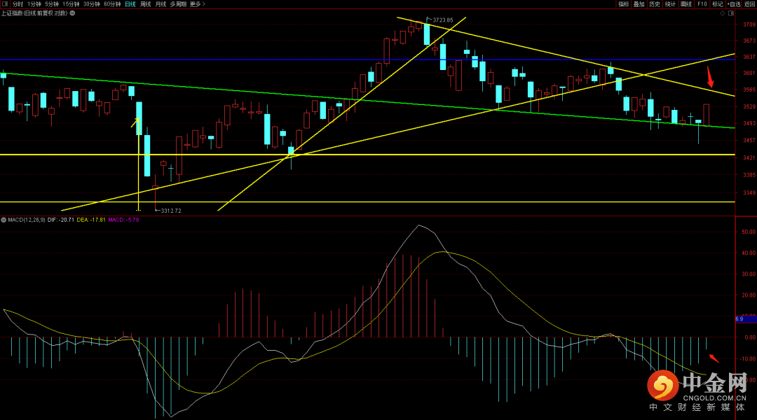大盘低开高走向上回补了缺口且突破了六十分钟的下降趋势线,短期需要重点关注量能的变化,上方强压即将到来关注3550是否突破,在无法突破的话大概率会出现再次向下折返。