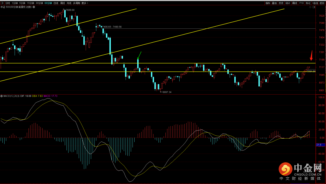 中证500短期依旧需要关注六十分钟中枢上轨的压制,在没有突破之前大概率都还会再次回到下轨附近。