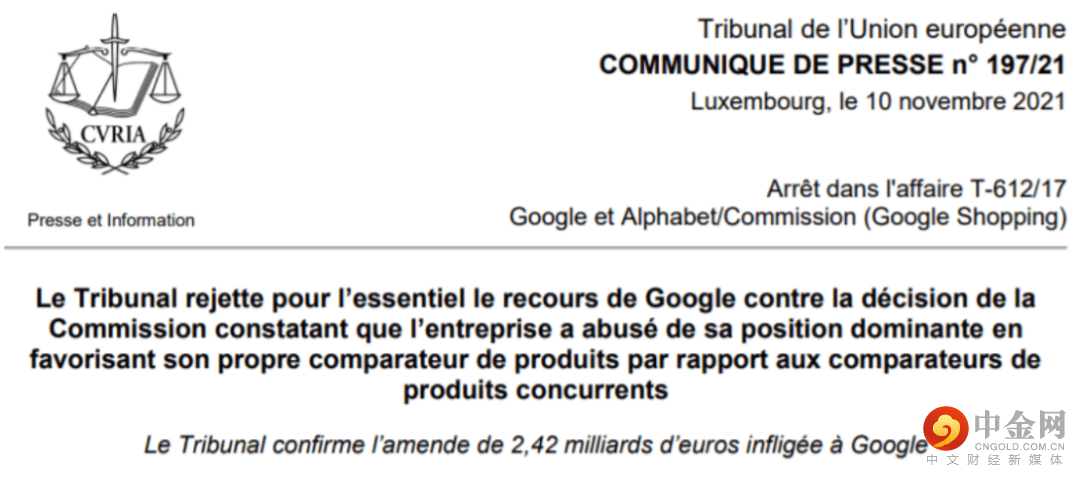当地时间11月10日,欧洲第二最高法院“欧盟总法院”就谷歌对欧盟24.2亿欧元(约合人民币179亿元)反垄断罚款提出的质疑作出了裁决,最终的结果是,谷歌败诉。欧盟法院的判决认为,谷歌在商品比价服务方面利用其搜索引擎的优势地位对竞争对手形成了不正当的优势。