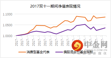 2017年双十一期间市场偏上行,消费型基金代表组合大幅跑赢对标指数。
