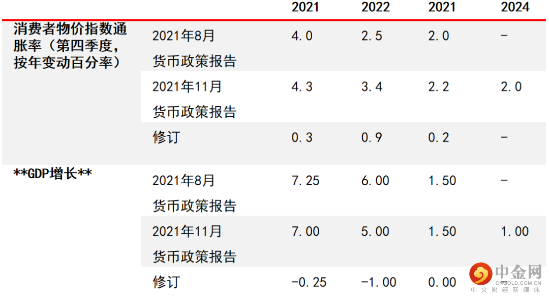 货币政策委员会继续维持通胀只是暂时性的观点,又预期明年4月通胀会达到略低于5%的峰值。