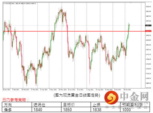 前一个交易日黄金上涨0.68%,收盘来到1862.11。