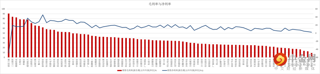 81家上市公司平均毛利率为38.76%,毛利率中位数为35.04%。毛利率最高的是诺思兰德,达90.48%,所属行业为制造业,主营业务为营养补充类制剂;最低的是德众汽车,为9.12%,所属行业为批发和零售业,主营业务为汽车及零配件经销、汽车维修、专业咨询服务。除德众汽车外,其余80家公司的毛利率均基本分布在10-100%,毛利率排名前十为:诺思兰德、三元基因、德源药业、生物谷、梓橦宫、通易航天、大唐药业、永顺生物、数字人、泰祥股份。而平均净利率为15.95%,净利率中位数为15.40%。81上市家公司中,净利率最高的为泰祥股份,达45.44%,所属行业为制造业,主营业务为发动机设备;最低的是诺思兰德,为-48.66%。除诺思兰德外,其余80家公司净利率均为正,基本分布在2-50倍的范围,净利率排名前十为:泰祥股份、通易航天、国义招标、海希通讯、驱动力、同惠电子、微创光电、观典防务、星辰科技、数字人。