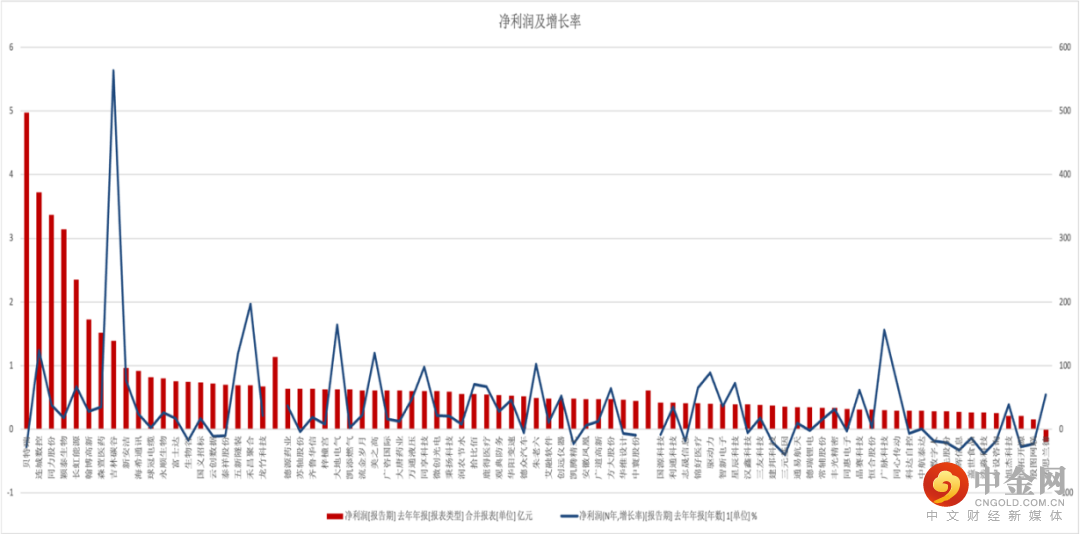 81家上市公司净利润平均数为0.71亿元,净利润中位数为0.49亿元。归母公司净利润最高的是贝特瑞,达4.97亿元,所属行业为制造业,主营业务为超硬材料、低压电器类;最低的是诺思兰德,为-0.20亿元,所属行业为制造业,主营业务为营养补充类制剂。除诺思兰德外,其余80家公司的归母净利润均为正,基本分布在0-5亿元,排名前十为:贝特瑞、连城数控、同力股份、颖泰生物、长虹能源、翰博高新、森萱医药、吉林碳谷、新安洁、海希通讯。此外,据归母净利润增长率统计,共有56家公司增长率为正,其中最高的是吉林碳谷,达563.39%,所属行业为制造业,主营业务为合成纤维。排名前十为:吉林碳谷、禾昌聚合、大地电气、广脉科技、连城数控、美之高、五新隧装、朱老六、同享科技、驱动力。