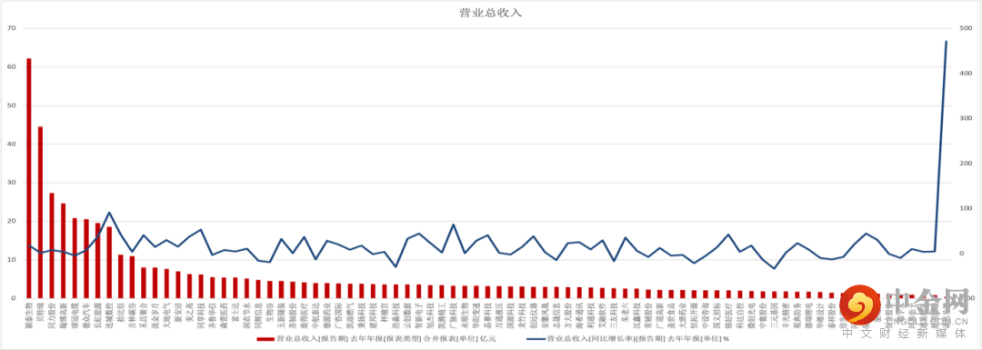 81家上市公司平均营业总收入为6.02亿元,中位数为3.22亿元。营业总收入最高的是颖泰生物,达62.25亿元,所属行业为制造业,主营业务为有机化学农药;最低的是诺思兰德,为0.41亿元,所属行业为制造业,主营业务为营养补充类制剂。除颖泰生物外,其余78家公司营业总收入基本分布在1-50亿元的范围,排名前十为:颖泰生物、贝特瑞、同力股份、翰博高新、球冠电缆、德众汽车、长虹能源、连城数控、拾比佰、吉林碳谷。此外,共有59家公司营收增长率为正,其中最高的是诺思兰德,达471.44%,其余56公司增长率基本分布在1-100%的范围,排名前十为:诺思兰德、连城数控、广脉科技、同享科技、星辰科技、智新电子、锦好医疗、拾比佰、晶赛科技、禾昌聚合。