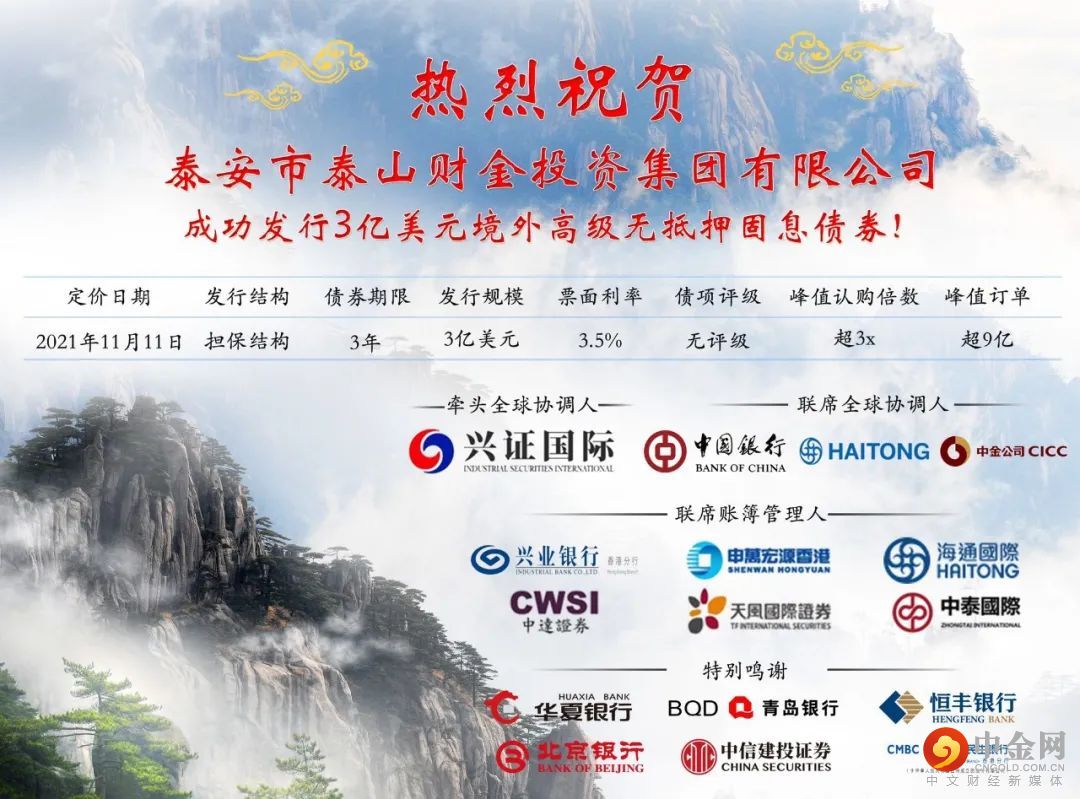 上周,成功助力泰安市泰山财金投资集团有限公司(下称“泰山财金集团”)、武汉金融控股(集团)有限公司、浙江省新昌县投资发展集团有限公司(下称“新昌投发”)及信银(香港)投资有限公司发行境外美元债券。