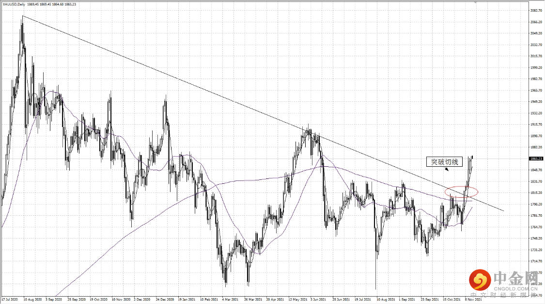 数据方面:周五美国公布的11月密歇根大学消费者信心指数从10月份的71.7降至66.8,而对1年通胀率的预期从10月份的4.8%升至4.9%,创去年夏季以来的最高水平,这对周五的黄金价格形成了一定的支撑,但是根本原因是,此前美国和中国均公布通胀压力上升超过预期。投资者担心通胀并非像美联储描述是暂时的的现象,甚至可能会持续很长一段时间。商品的上涨,对于对抗通胀的黄金来说是巨大的利好。另外一方面要看具体的美联储加息的速度,因市场担心通胀飙升可能迫使美联储升息,导致没脸具有吸引力,如果美联储将被迫以比最初预期更快的速度加息,而美元也随之攀升,那么金价的涨幅可能有限。