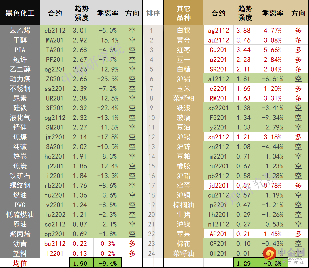 中期商品趋势榜 | 贵金属多头延续强势,黑色能化趋势尚未转换(1112)