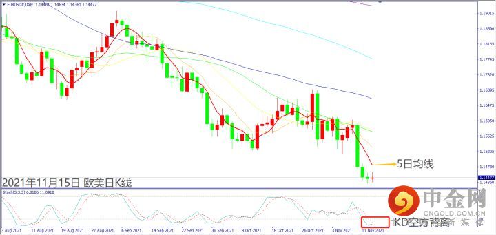 日级别线图,出现十字星反转信号,KD空方背离,可能反弹挑战5日均线。