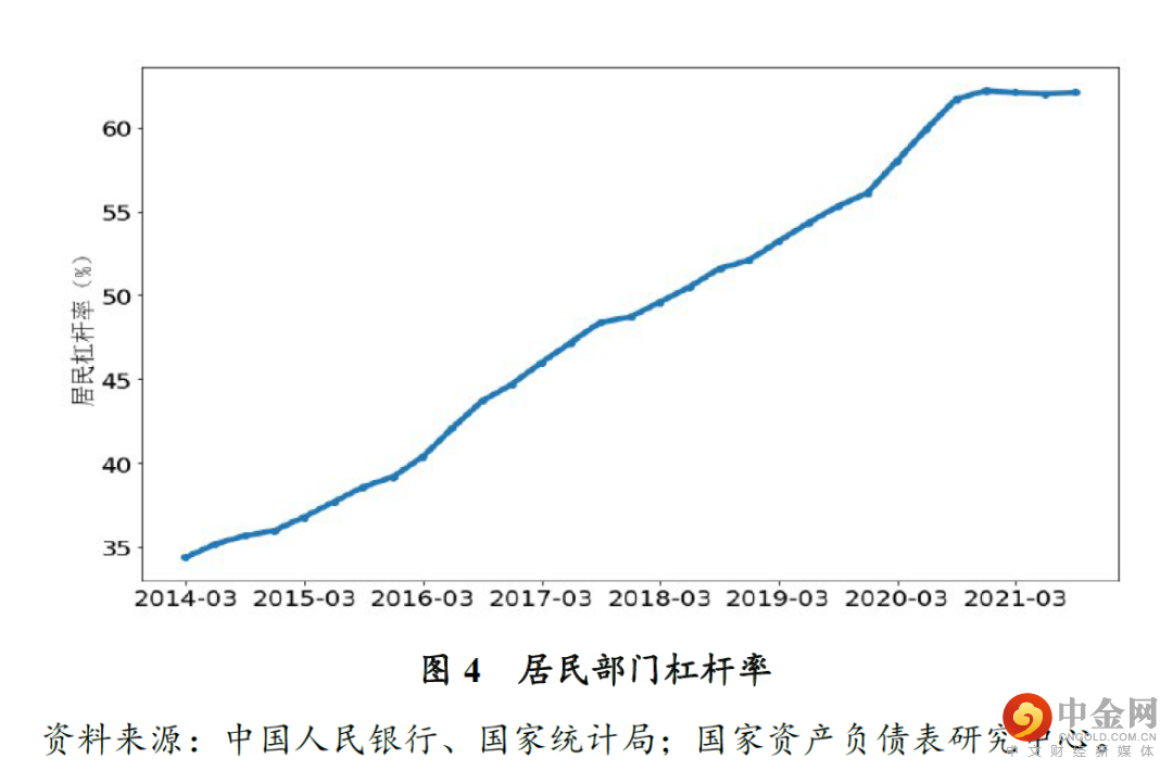 2014年,居民债务杠杆率(居民债务/GDP)不到35%,而2021年已经超过60%,赶上了发达国家水平。