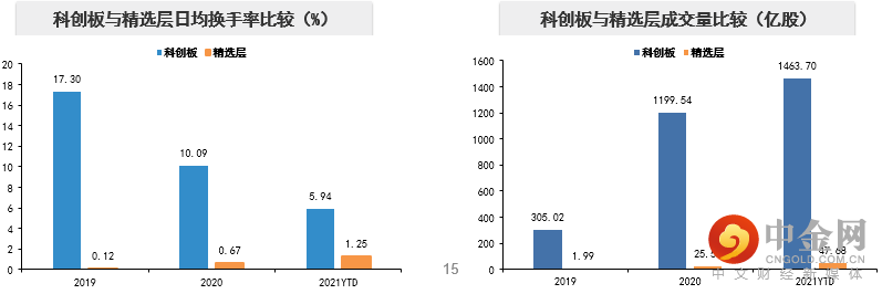从交易的活跃度上看,目前精选层的流动性并不充分,远低于科创板,也导致了精选层股票估值相对偏低,当伴随着北交所的开板,以及机构投资者的介入,将极大的可能提高交易的活跃度,提高市场的吸引力。