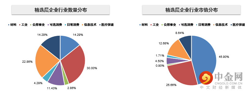 从行业视角看,企业主要集中在工业和信息技术行业,市值集中于材料行业。但如果剔除占据市值31.5%的这家材料行业的相对较大企业,企业还是主要集中在工业和信息技术行业。