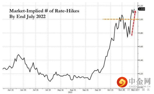 周一,市场预期美联储到明年7月时的加息次数创下新高。