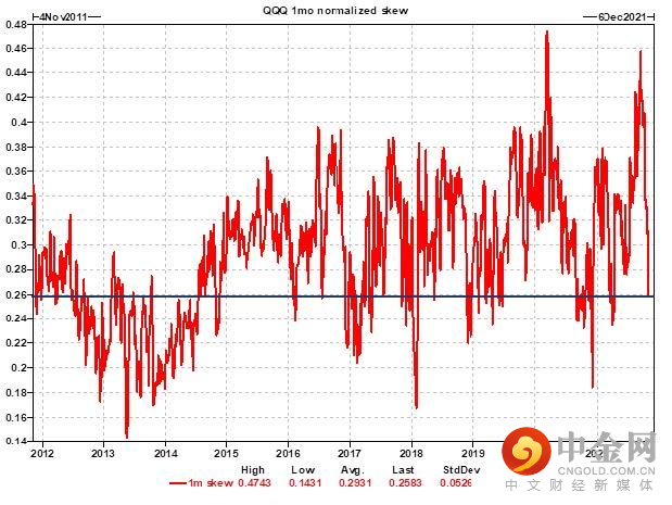 Skew指数已经趋于平缓,这一现象不仅出现在单一股票上,还蔓延到了指数市场(尤其是NDX和罗素2000指数)。