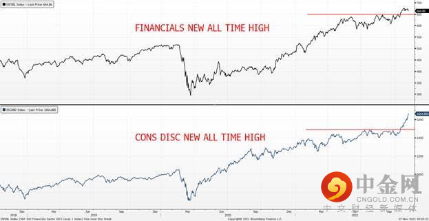 此外,弗勒里还在报告中指出,金融和非必需消费品板块创下历史新高。
