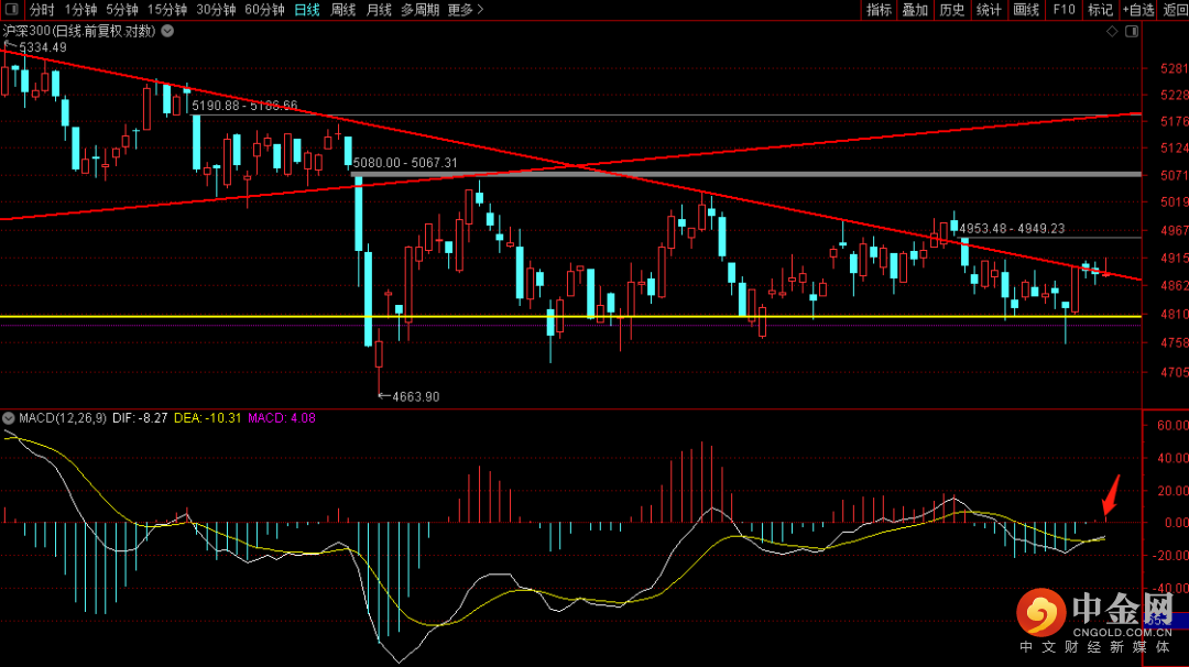 沪深300短期重点关注macd的量柱,在没有出现再次翻绿之前大概率还会继续向上,关注上方4928压制,如果出现突破则有望回补上方4953的缺口。而下方在没有跌破五天线可以考虑逢低布局。