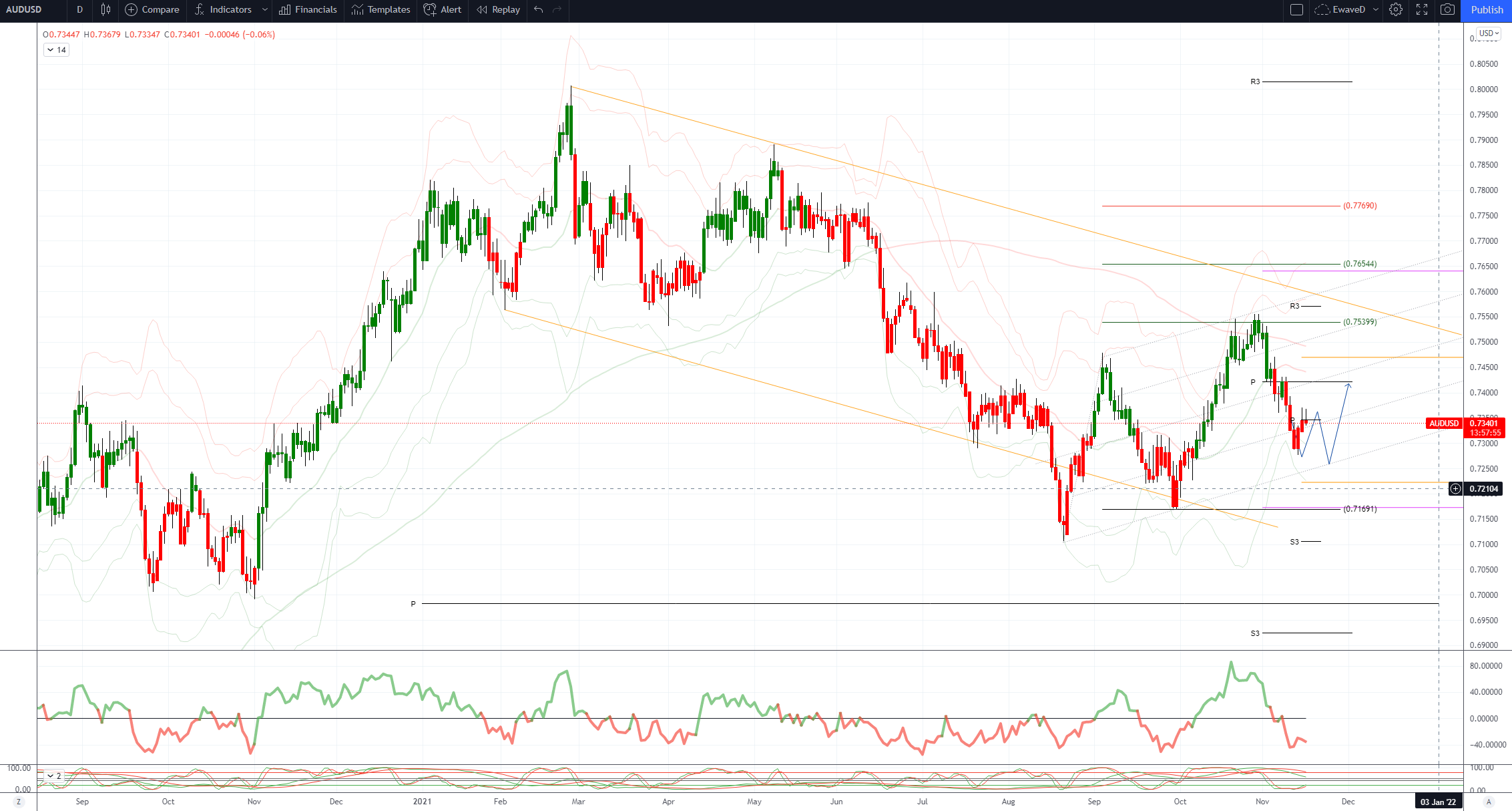 阻力在10天MA时为0.7371,断裂表明底部形成
