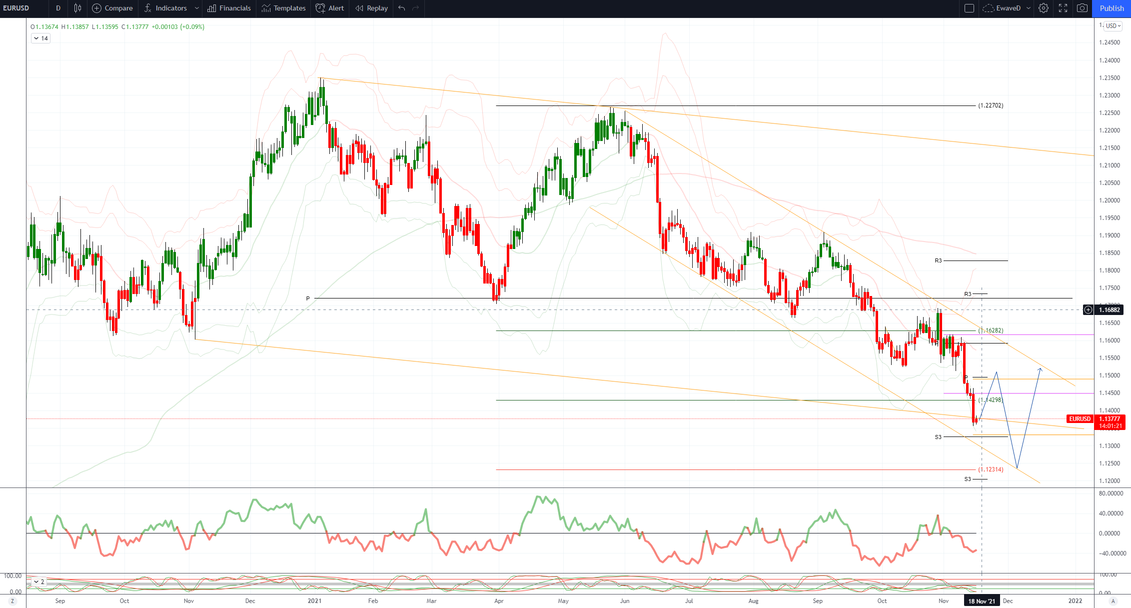 动量研究冲突-下降趋势目标1.3166,2020-21年上升38.2%
