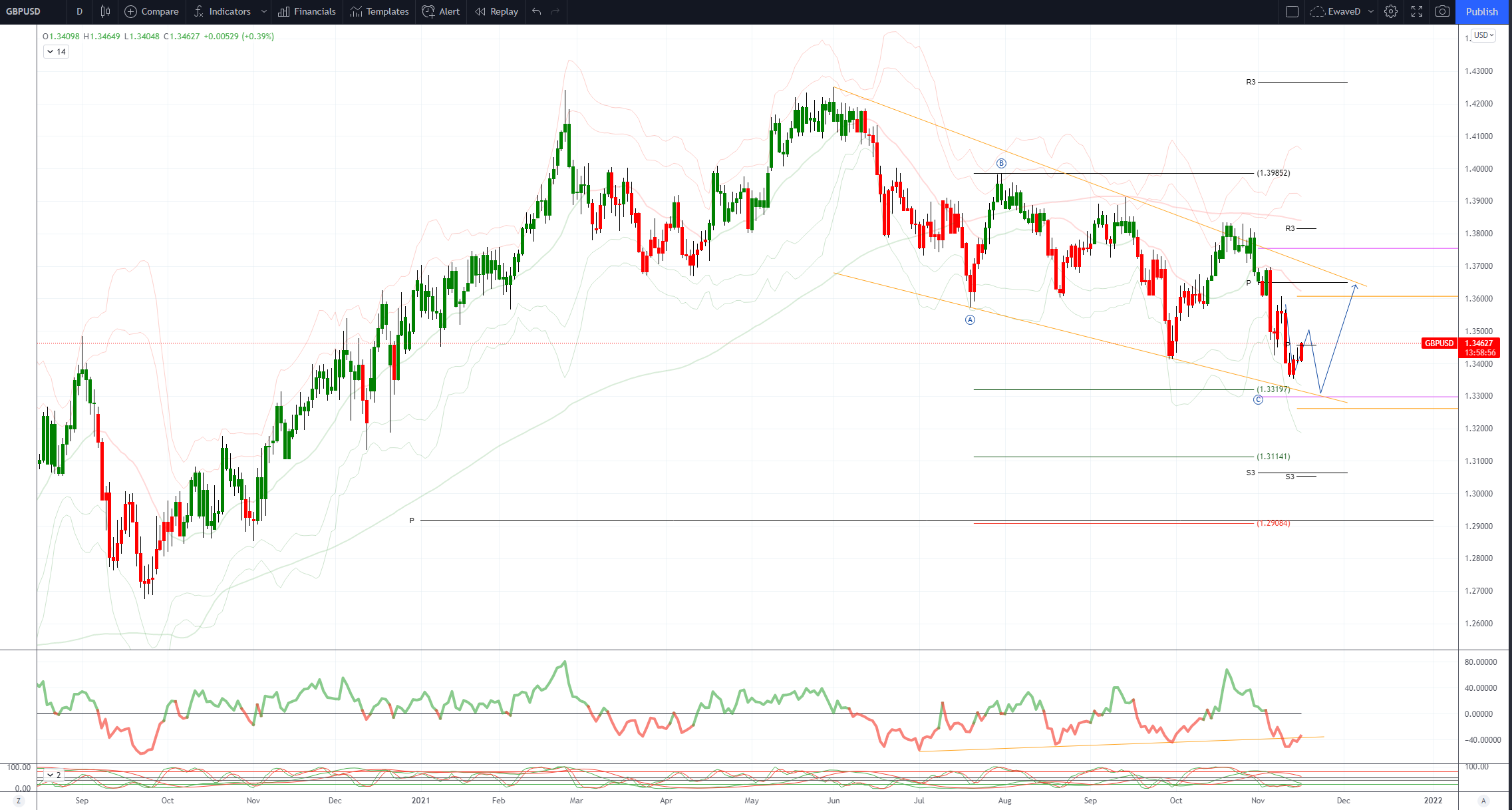 GBPUSD 日内偏差: 看跌低于1.36,看涨高于1.36。