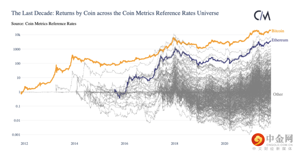 尽管短期内山寨币价格大幅上涨,但来自 Coin Metrics 的数据显示,虽然在牛市期间一些小盘资产无疑会跑赢 BTC,但许多资产可能经不起时间的考验。从历史上看,从长远来看,与 BTC 甚至 ETH 相比,大多数代币已经下跌。