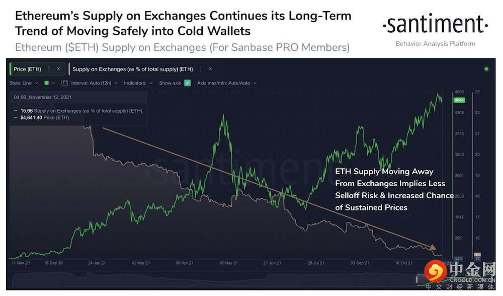 然而,20,000 ETH 并不是一个很大的数字,因为目前每天大约有 12,000 ETH 被烧毁。出售 20,000 ETH 的影响很容易被 2 天的销毁抵消,因此,基金会出售的影响是心理层面的,而不是真正的价格影响。从交易所撤出的 ETH 供应量仍然呈下降趋势,这意味着投资者仍然没有将他们的 ETH 送到交易所出售,但仍在购买并将其转移到冷库中,或用于 DeFi 农业。交易所中的 ETH 储备量已降至流通量的 15.7% 左右,略低于 BTC 的 12.9%。