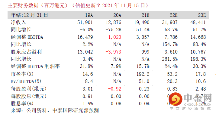 管理层表示当10月19日出境管制放宽后,博彩收入迅速反弹,快恢复至今年7月的水平,与其他博企的表现一致。虽然10月整月实际经营天数仅约10天左右,但公司已几乎可录得EBITDA盈亏平衡。公司维持原来的发展步伐,并不会被疫情影响部署。澳门银河莱佛士酒店(拥有450间全套房)会配合市场状况于2022年(原订于22年初)开业,而银河国际会议中心及澳门安达仕酒店并将紧随其后相继开业。集团亦继续推进银河四期的建设工程,项目完成后,整个澳门银河的版图及旅客承接力将较目前增加超过一倍。长远而言,集团将对百老汇酒店进行改建,而横琴土地的发展亦带来长线的机遇。