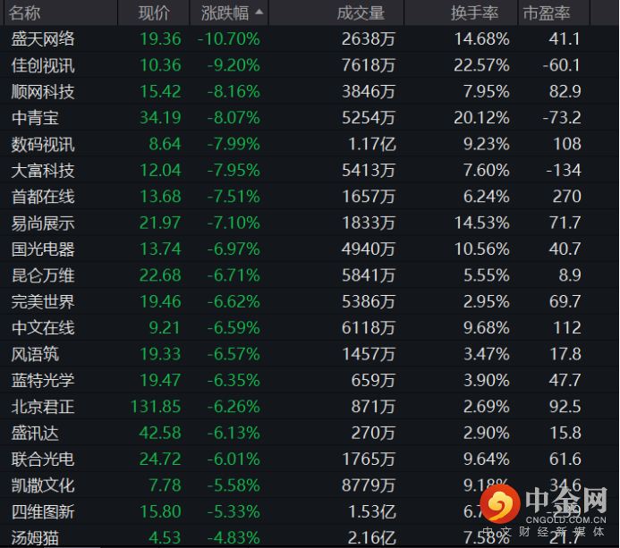 元宇宙概念“熄火 ” 盛天网络、中青宝等大跌
