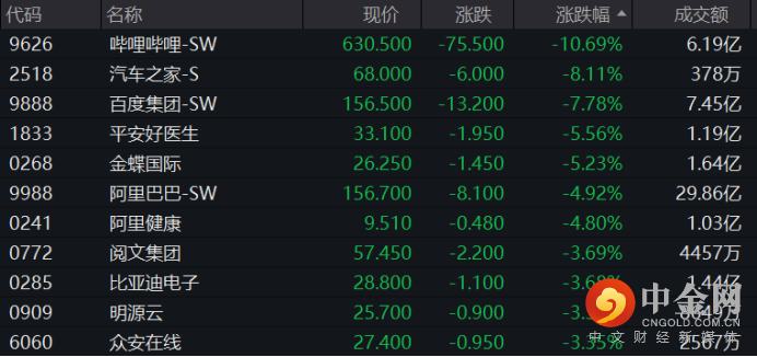 港股科技股集体大跌 哔哩哔哩跌超10%