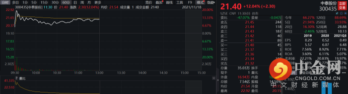受行业利好消息刺激,氢能源概念股18日盘中强势拉升,截至午间收盘,中泰股份涨约12%,金能科技、阳煤化工涨停,美锦能源、凯美特气等涨幅超5%。