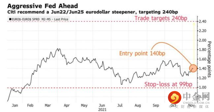 花旗集团分析师表示,市场定价显示的加息路径太平缓。因此,该行以140个基点的价格启动了2022年6月/2025年6月合约的陡化交易,目标为240个基点。