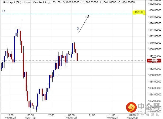 可以部署在$1,846美元左右建立好仓盘,短线看高金价一线至$1,879美元水平,止损在$1,838美元。