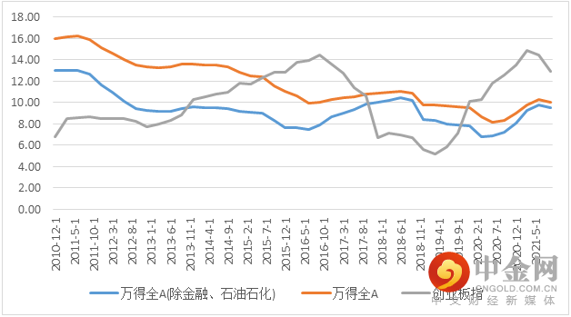 从历史经验来看,ROE变化滞后于净利润增速3个季度左右,我们从三季报可以看到ROE回落的时间早于市场预期,21年Q3万得全A就出现了ROE的下降,而创业板指的ROE已经连续两个季度下滑。