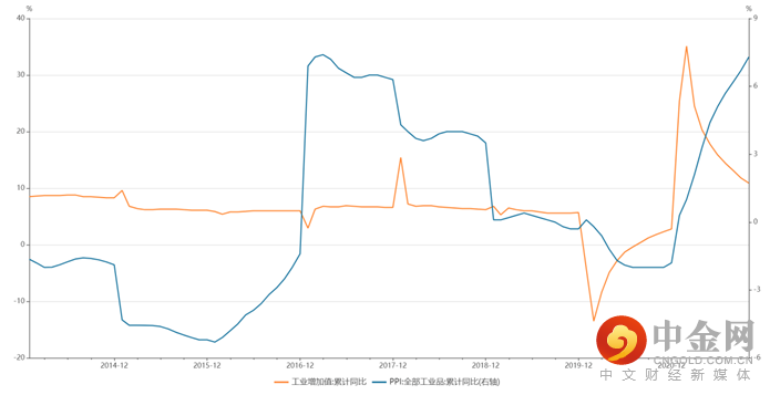 工业增加值和PPI累计同比%