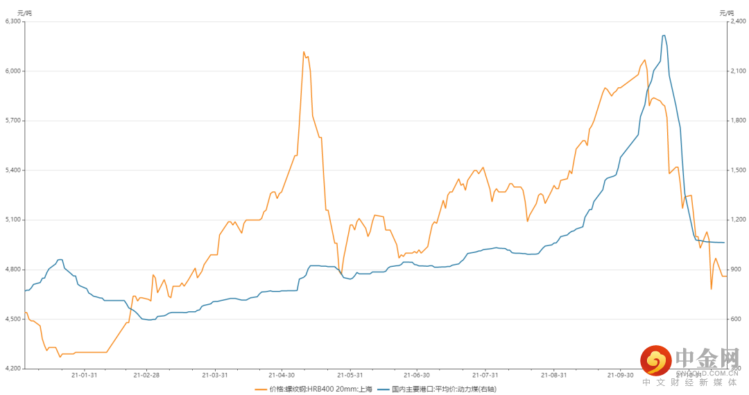 螺纹钢和动力煤价格变化