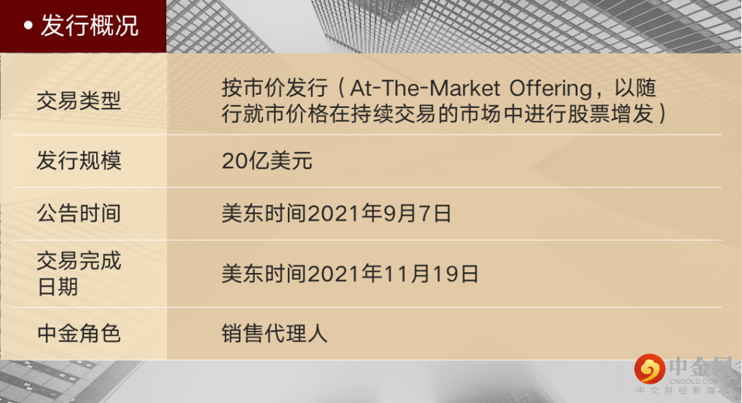美国东部时间2021年11月19日,蔚来汽车(NIO Inc.,NYSE: NIO)成功完成20亿美元美股ATM增发(At-The-Market Offering),中金公司担任本次交易的销售代理人。