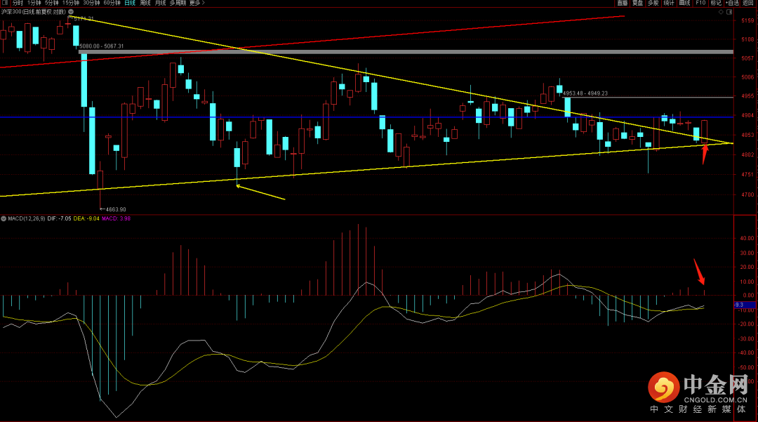 沪深300出现macd量柱由绿转红走势,短期不弱反强代表主力选择了继续看多,短期需要继续维持红柱扩张走势,只要继续维持上方缺口有望在近期出现回补。