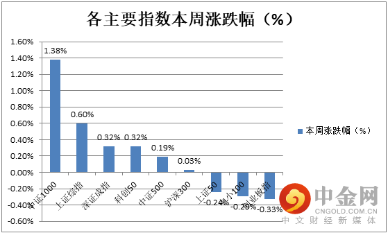 本周各大指数表现分化,中证1000、上证综指表现较好,而上证50、中小100、创业板指最终微幅收跌。(见图1)