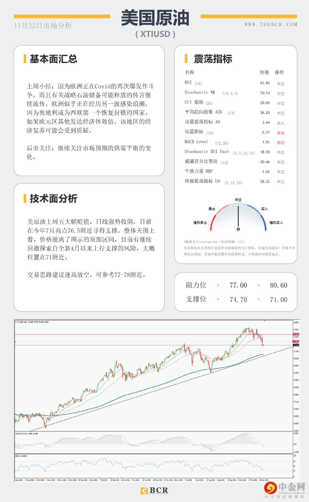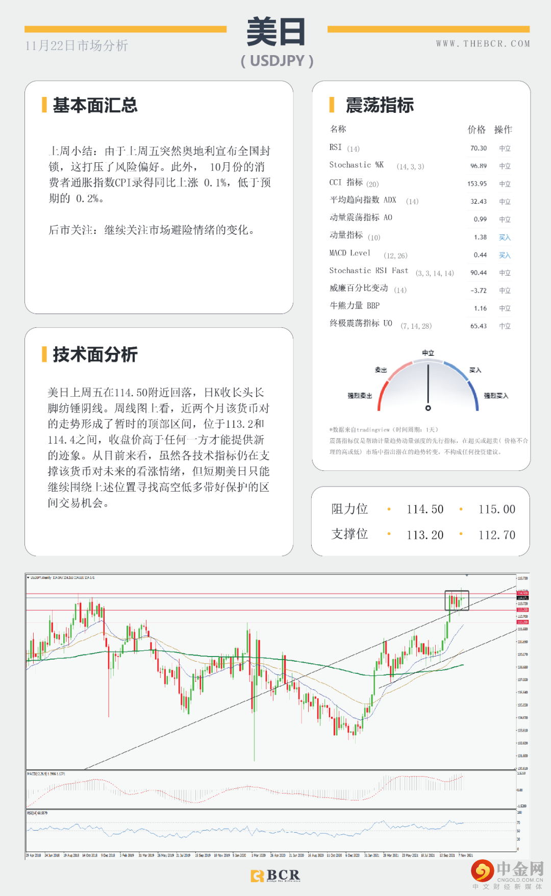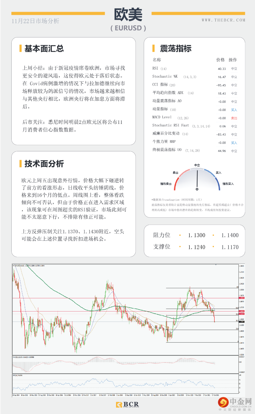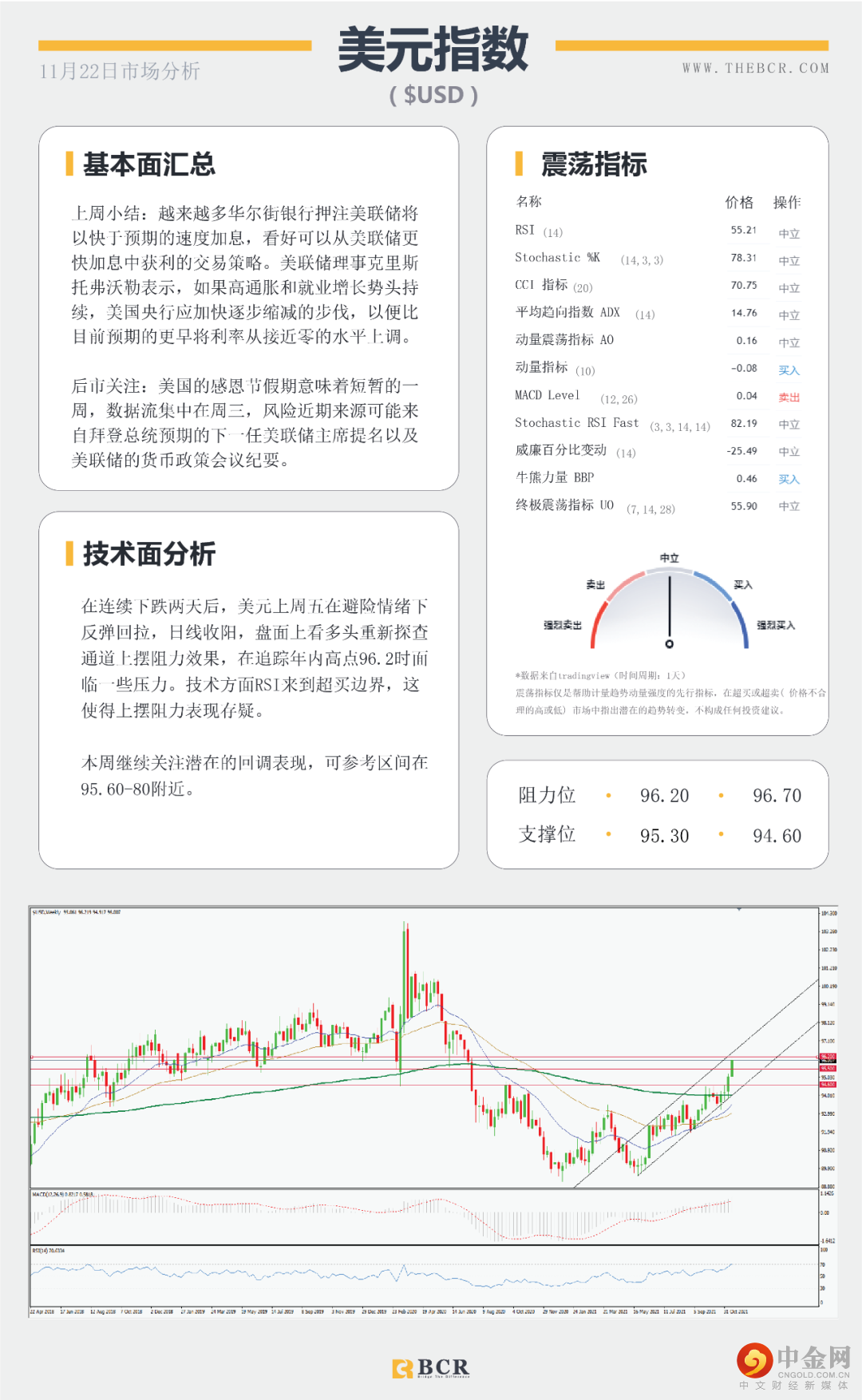 福瑞斯每日技术解盘1122:美元强弱影响非美反弹,黄金或再度走弱?