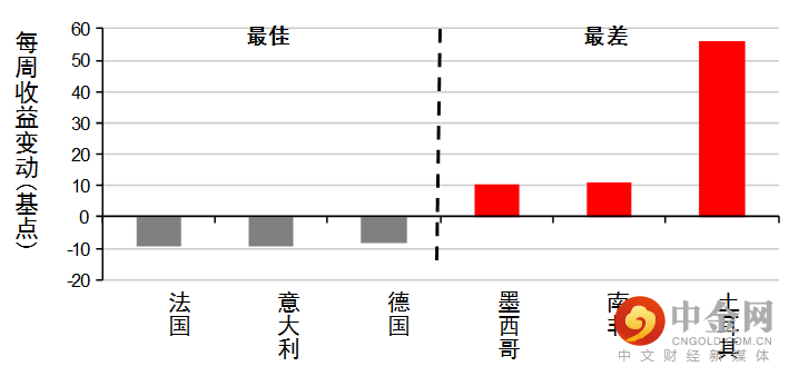 债券:美国国库券和欧洲政府债券上周报升(息率下跌)