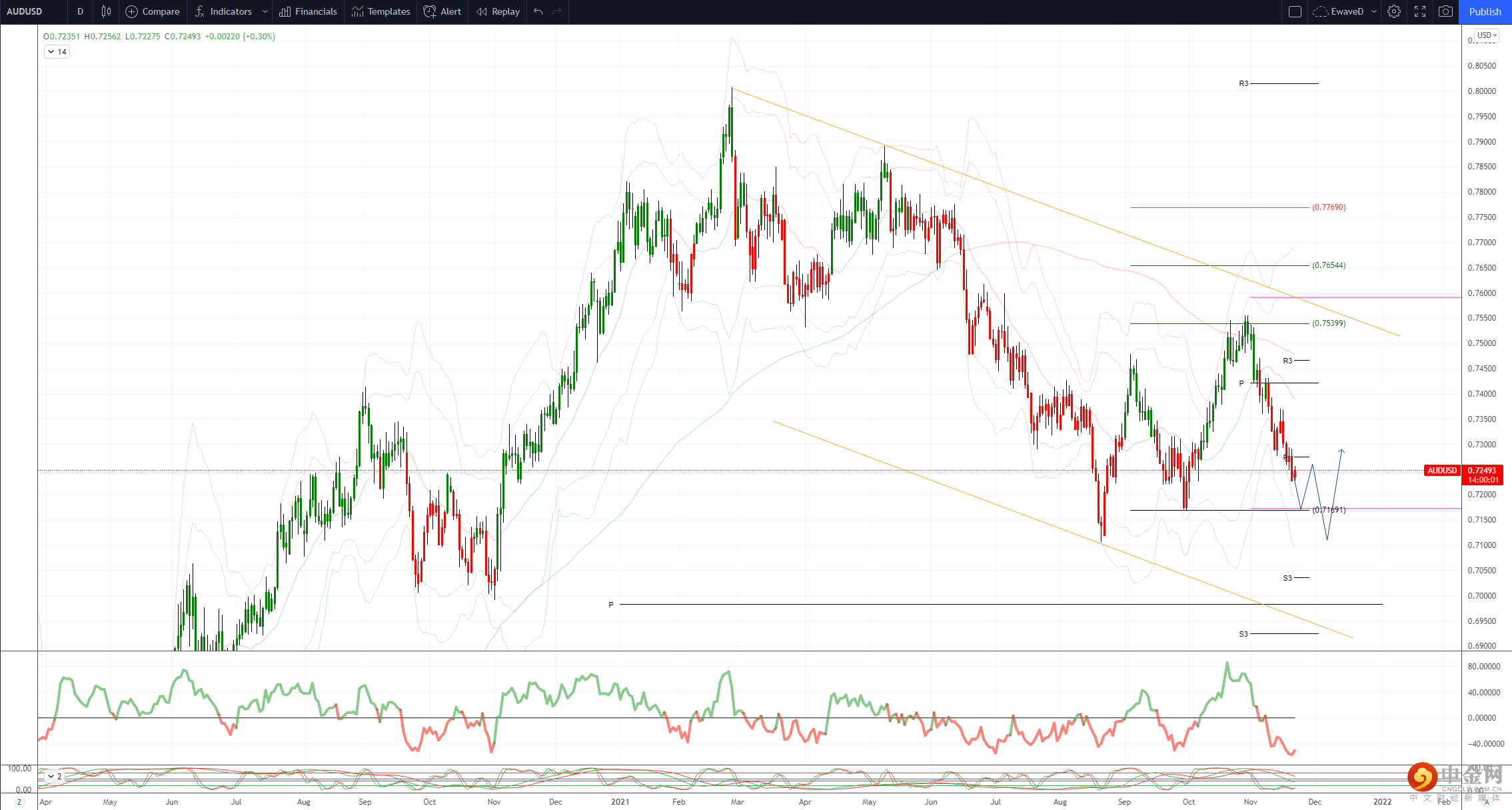 支撑位于 200 周均线 0.7195 和趋势低点 0.7170