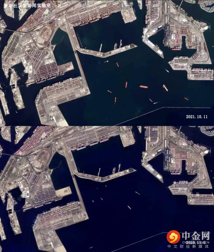 经济学人杂志提到,同时也显示在新华社的卫星图片中,今年8-11月,有超过40艘集装箱船停泊在洛杉矶和长滩附近无法装卸。航运咨询公司顾问表示这些船实际上是集装箱的停车场,用来避免堵塞港口,更由于港口缺乏火车或卡车,船上的货物也无法转移到早已经爆满的港口仓库中。这些“僵尸船”表明着整个海运链条,在一些关键节点已经断裂。