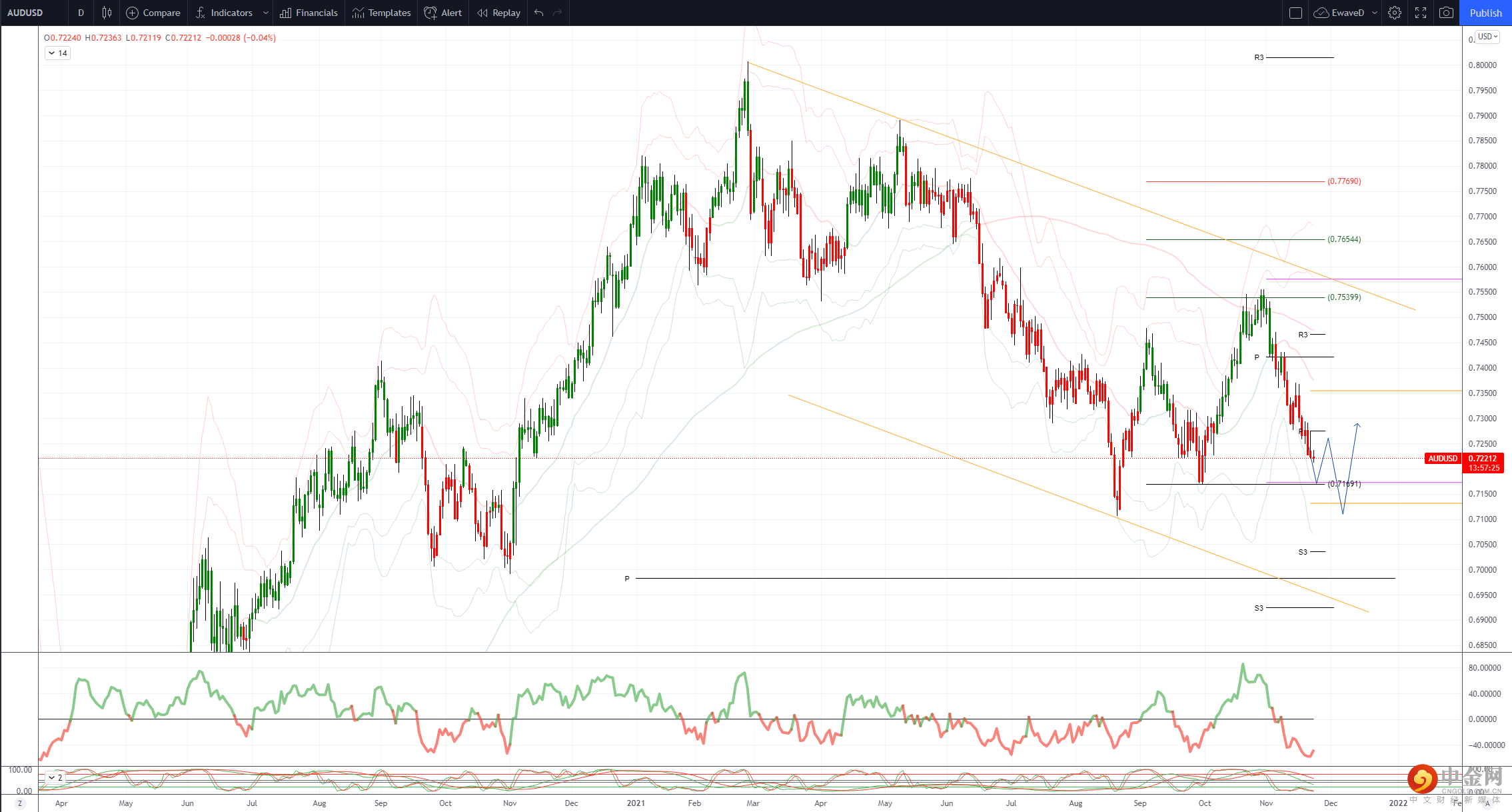 盘中目标是通道底部 0.7165,在 8 月低点之前