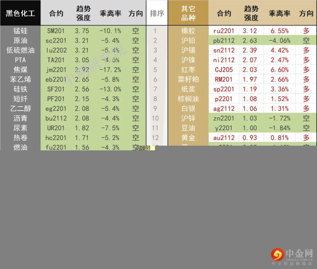 中期商品趋势榜 | 橡胶多头夺冠,原油空头领跌能化(1122)
