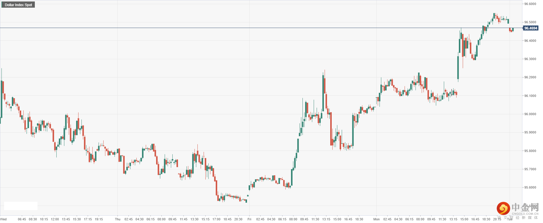 美元指数昨日盘中大幅跳升0.52%后,今日开盘涨至96.46附近,由于美债收益率攀升及经济数据利好,伴随拜登提名鲍威尔连任后,提振美元上行支撑。