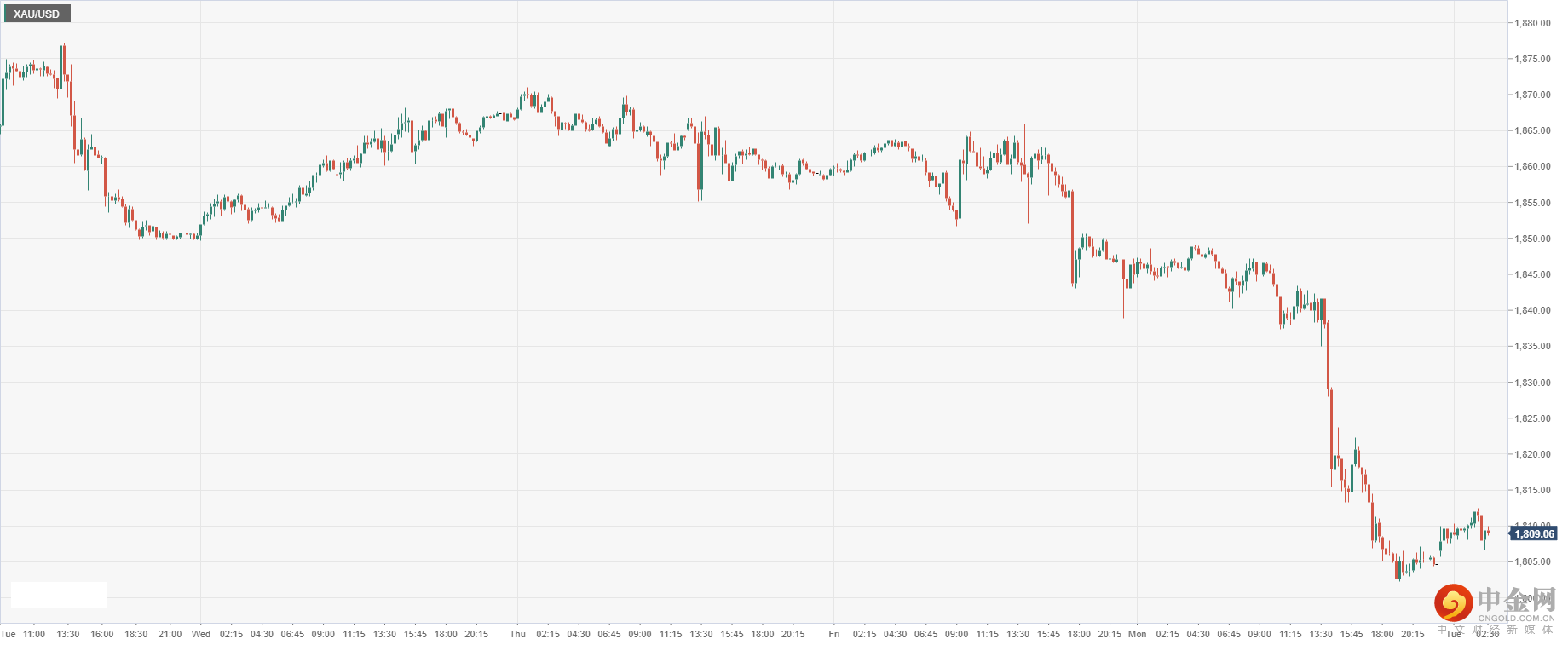 § 贵金属方面:黄金兑美元下跌至1809.06。