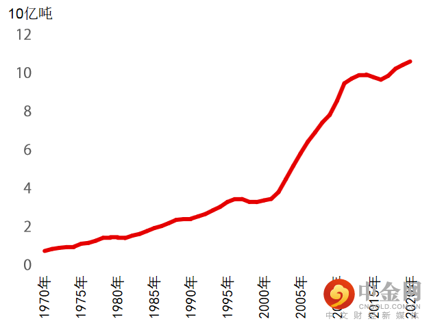 图 1:中国每年二氧化碳排放量