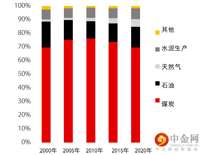图 2:中国碳排放量(按燃料类型及工业活动划分)